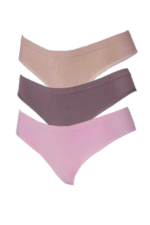 Kit 3 Calcinhas Cós Alto Hoahi Bege/Rosa/Lilás – Algodão Sem Costura