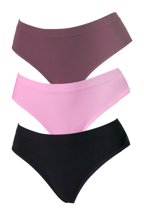 Kit 3 Calcinhas Cós Alto Hoahi Preto/Rosa/Lilás – Algodão Sem Costura