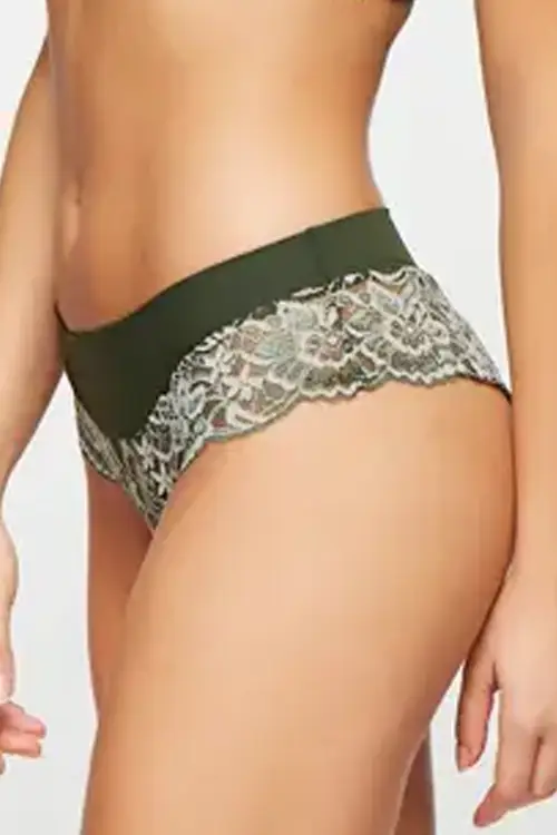 Caleçon em renda, com cós em microfibra dupla e forro na frente da peça para maior conforto.