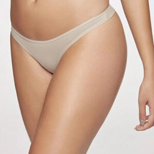 Calcinha em microfibra aveludada opaca e acabamentos em elástico de viés. Modelagem fio que não marca sob a roupa.