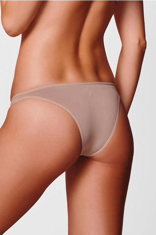 Peça em microfibra aveludada opaca e acabamentos em elástico macio. Peça com menos cobertura e que não marca sob a roupa.