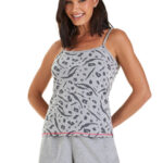 R$76,41Pijama Pitaya, blusa de alça e short mescla Composição de Materiais: 85% Algodão + 15% Poliéster