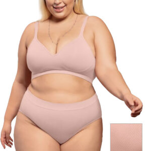 A Calcinha Clássica Alta Plus Sem Costura com modelagem mais ampla que oferece maior segurança e conforto.