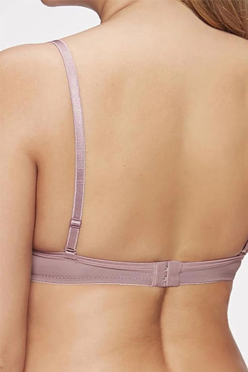 Sutiã em microfibra aveludada opaca e acabamentos em elástico de viés, com bojo e sem aro. Possui alças destacáveis nas costas.