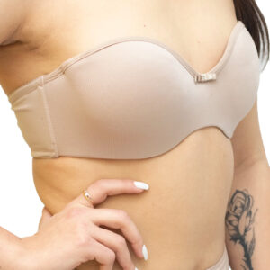 Sutiã tomara que caia, barbatanas laterais para melhor sustentação, costas mais altas e opções de alças